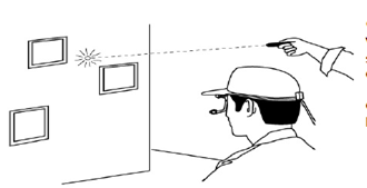 當(dāng)進(jìn)行校準(zhǔn)時,對象要坐或者站在這個墻面前,如下圖所示。但是日本不使用固定點,因為當(dāng)頭移動時,校準(zhǔn)點也移動了。因此推薦使用如下的指示器。