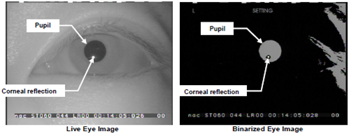 如果在下面的二值化的眼睛圖像不合適,那么某些部分的校準(zhǔn)將會變得困難。同樣也請確保焦距是正確地調(diào)整過的。示意圖如下: